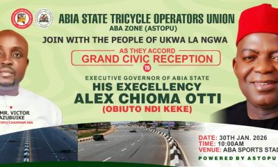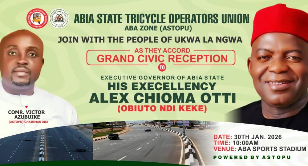 The Abia State Tricycle Operators Union (ASTOPU), Aba Zone, has announced its readiness to join the people of Ukwa-La-Ngwa extraction in hosting a grand civic reception...