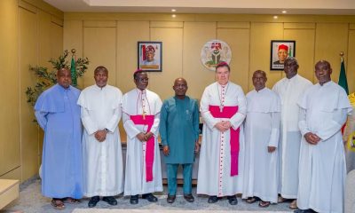 …as He Receives Vatican Envoy, Most Rev. Michael Francis Crotty; Hails Catholic Church for Ordaining 15 Deacons The Executive Governor of Abia State, Dr. Alex...
