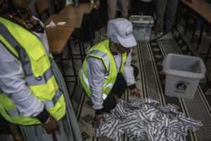 Despite a heavy security presence, election day descended into chaos as crowds took to the streets across the country, tearing down her posters and attacking police and polling stations, leading to an internet shutdown and curfew.